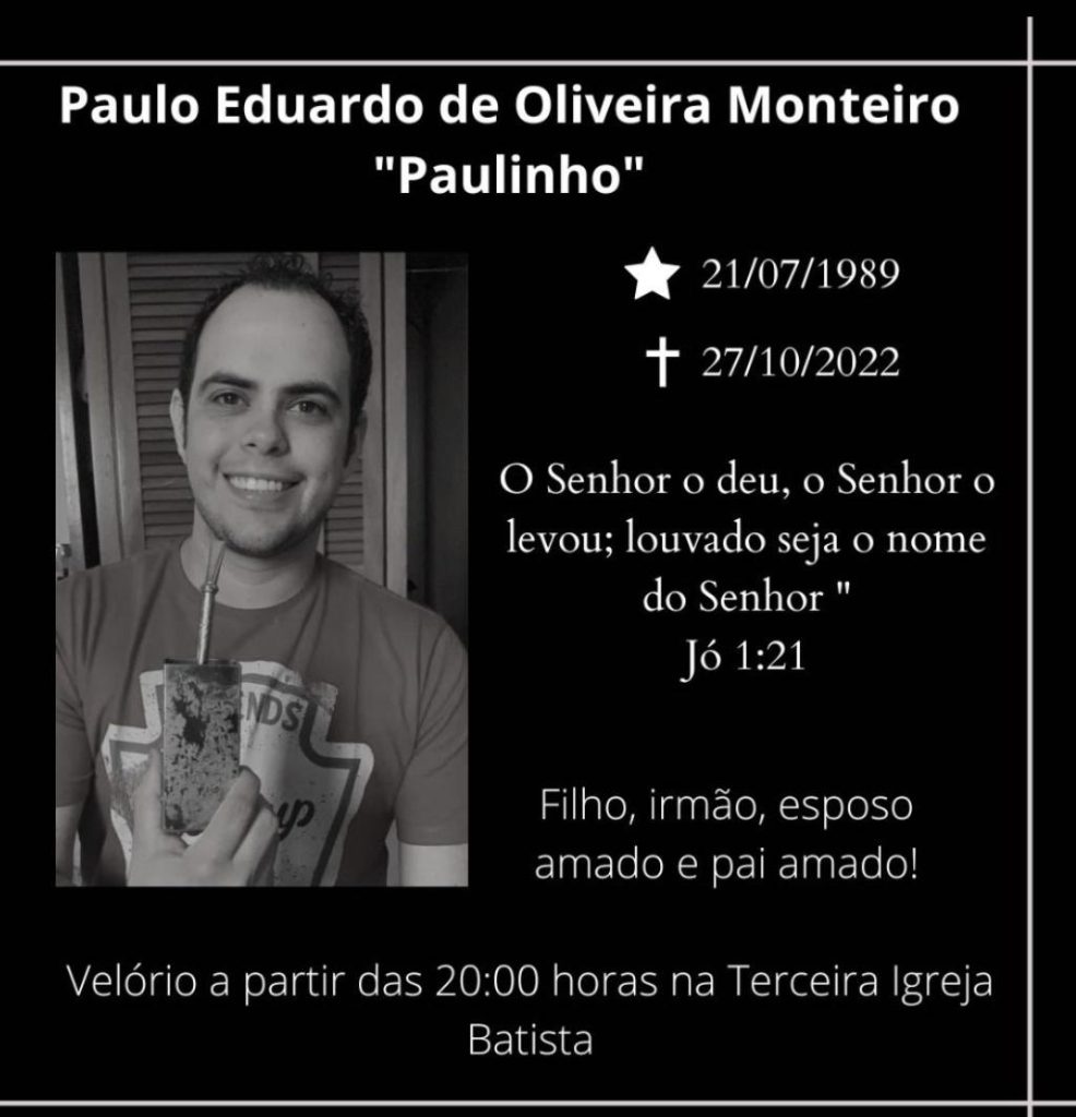 Comunicamos com pesar o falecimento de Paulo Eduardo de Oliveira Monteiro, ocorrido no dia 27/10/2022.