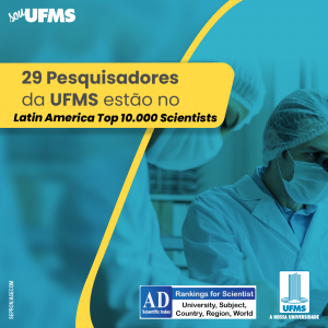 Os nomes de 29 pesquisadores da UFMS estão no “Latin America Top 10.000 Scientists – AD Scientific Index 2021 – Version 1”. O ranking traz uma classificação dos cientistas mais influentes da América Latina, baseada no desempenho científico e no valor agregado da produtividade científica individual.
